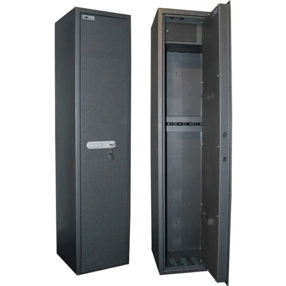 Оружейный сейф SP 5-150MM объединяет компактный корпус и стволовое отделение на пять ружей, что удобно при установке в ограниченном по площади помещении. Модель оснащена усиленной дверью с трёхсторонним ригельным механизмом и двумя ключевыми замками Kaba Mauer, которые формируют надёжный контур запирания. Внутри предусмотрены ложементы, отделение под боеприпасы и навески на двери, чтобы поддерживать порядок и аккуратно разместить аксессуары.