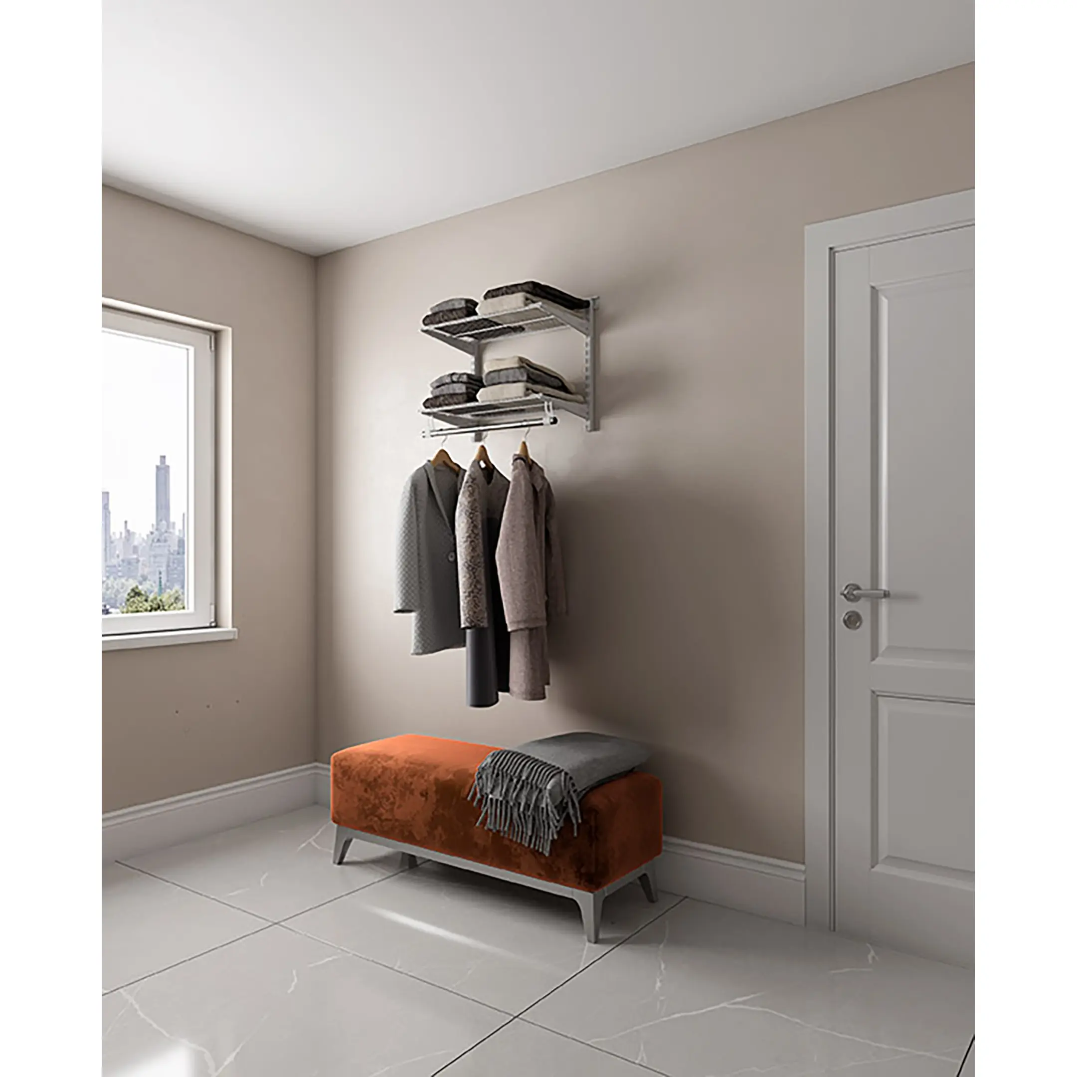 Среди её бесспорных преимуществ – фактор экологичности: открытая гардеробная система создаёт воздухообмен, исключая появление затхлости, повышенной влажности, неприятных запахов. В ней не заводится плесень, не копится пыль. Важна и визуальная открытость: гардеробная система с сетчатыми полками позволяет сразу увидеть нужный предмет, не тратя время на его разыскивание в недрах обычного шкафа.